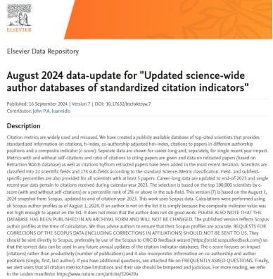 近日,斯坦福大学与Elsevier(爱思唯尔数据库)共同宣布更新了标准引文指标的全科学作者数据库,并发布了第七版《全球前2%顶尖科学家榜单2024》。榜单基于Scopus数据库的引用数据系统分析,...