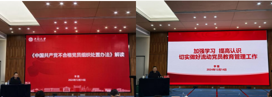 李磊对《中国共产党不合格党员组织处置办法》和《关于进一步加强和改进流动党员管理工作的意见》作了深入解读。他要求党支部书记全面准确把握当前基层党建工作的新形势、新任务、新要求,在提升政治素质和履职能力上走在前、作表率,在服务学院中心工作中争优争先争效。