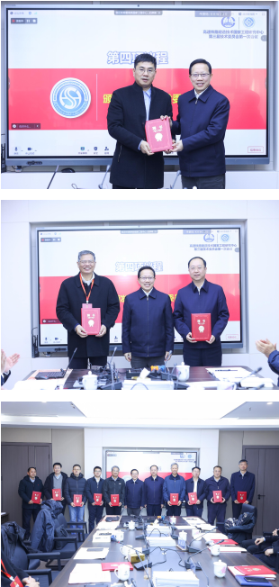 中国中铁领导黄超副总裁宣读了高铁国家工程中心第三届技术委员会人员名单,柴立元院士、黄超副总裁为第三届技术委员会颁发聘书。