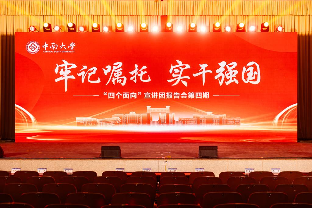12月17日下午,必赢766net手机版“四个面向”宣讲团报告会在中南讲堂举行。报告会以“牢记嘱托 实干强国”为主题,呈现了中南师生在服务国家战略、推动科技创新与人才培养方面的担当和贡献。易红等校领导,处级干部、离退休老同志、教师及学生代表等700余人共同聆听。
