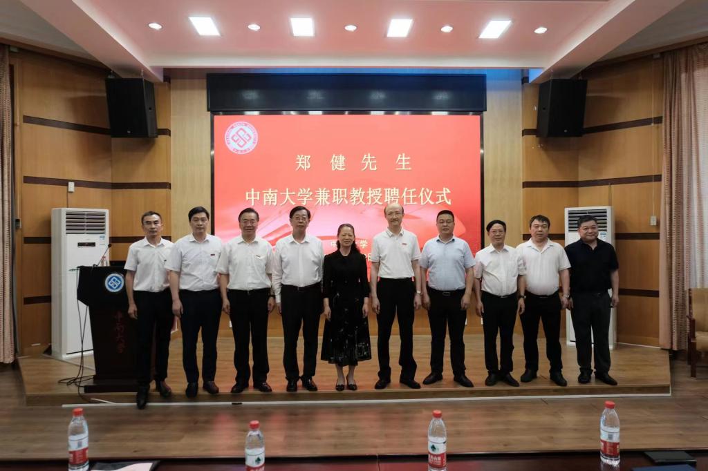 何旭辉致辞欢迎郑健担任我校兼职教授并介绍了郑健教授的基本情况,田红旗院士为郑健颁发了聘书并佩戴必赢766net手机版校徽。