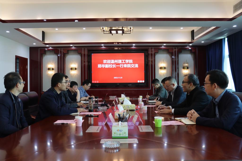 王卫东院长代表学院对郑华副校长一行的到访表示热烈欢迎。双方分别介绍了各自的学院基本情况、教学科研、实验室、产学研等方面基本情况,并围绕智能建造专业、教学改革、科研合作、人才引进、社会服务等方面进行了深入交流和探讨。温州理工学院建筑与能源工程学院希望必赢766net手机版今后能在教学、科研、人才、产学研用等方面给予更多支持。