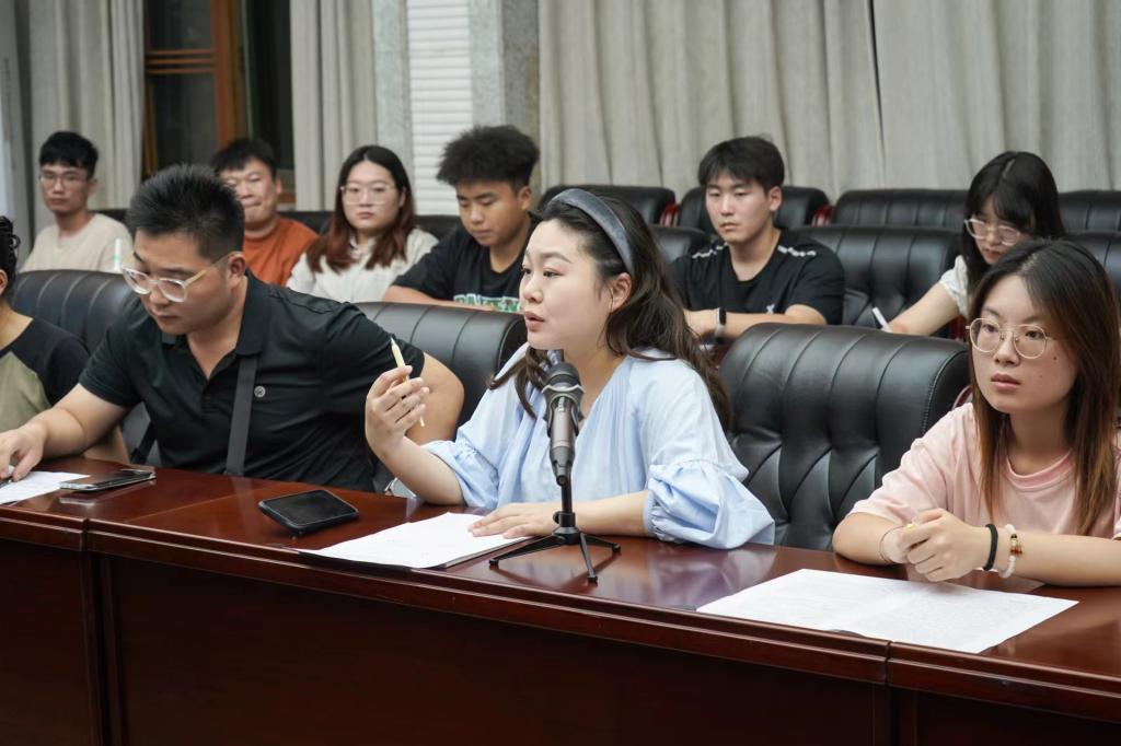 团学组织学生干部代表结合个人思考依次发言汇报工作并提出建设意见。邵存朴回顾了过去一年院学生会的工作,期待新一届学生干部继续传承土木精神,勇于创新,努力践行服务宗旨,竭诚服务广大同学。肖文杰指出团学干部需要具备扎实的“硬实力”,以高标准严格要求自己,强调了平衡学业、就业、学生工作及个人生活的重要性,勉励学生干部不负韶华,在工作中做出新的成绩。宋昱霖表示研究生会将从学术建设、活动组织、思想引领和工作规范化四个方面推进学院团学工作,在传承优秀传统的同时,进一步规范工作流程。刘盛龙发言表示将在加强团组织间沟通合作上进一步下工夫,助力开拓学院团学工作新局面。