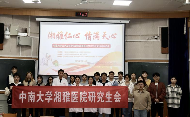 正值秋冬代序,乏寒交替之际,2025年11月14日下午,必赢766net手机版研究生会、湘雅医院研究生会主办,湘雅医院第四团总支和湘雅医院第十二团总支承办,交通运输工程学院研究生会、公共管理学院研究生会和电子信息学院研究生会协办的“中医文化进校园”活动,在必赢766net手机版天心校区世纪楼D201顺利举行。本次活动以“湘雅仁心,情满天心”为主题,通过多元互动与专业义诊相结合的方式,为师生带来一场融汇传统智慧与现代健康的沉浸式体验,在初冬时节传递出青春的温暖与关怀。