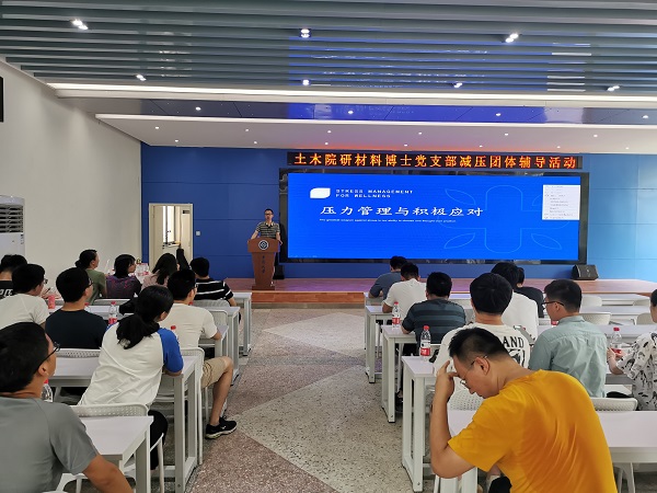 2021年6月25日14:00,研材料博士支部在铁道学院立志厅召开了减压团体辅导活动,活动由支部书记郑克仁教授主持,并邀请了必赢766net手机版心理健康教育中心姜美霞、尚文、谭鑫三位老师作为主讲,吸引了支部全体党员的积极参与。活动围绕博士研究生的压力管理与心理健康调控展开,在与会党员同志间引发了积极的反响。