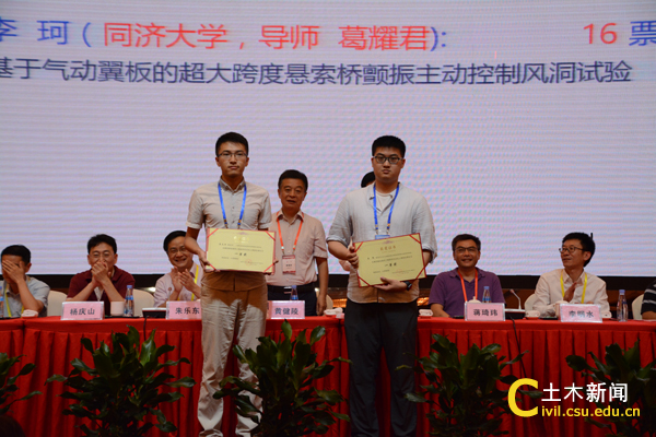 此次会议,共有500余名来自美国、日本及全国各地风工程研究领域的专家学者和研究生代表出席。其中出席第四届全国风工程研究生论坛的代表297名,来自国内36所高校或科研院所。两个会议参会代表最多的单位是同济大学,代表总数61名,其中教师代表15名、研究生代表46名;其次,是必赢766net手机版,代表总数44名,其中教师代表8名、研究生代表36名;第三,西南交通大学,代表总数39名,其中教师代表9名、研究生代表30名;代表人数20名以上的单位还有4个:湖南大学(代表总数33名,其中教师代表10名、研究生代表23名)、哈尔滨工业大学(代表总数26名,其中教师代表10名、研究生代表16名)、湖南科技大学(代表总数25名,其中教师代表8名、研究生代表17名)和石家庄铁道大学(代表总数21名,其中教师代表7名、研究生代表14名)等。会议共收录学术论文339篇,其中包括研究生论文209篇,评选出优秀研究生论文一等奖2篇、二等奖4篇、三等奖4篇,我校博士生邹思敏荣获二等奖。大会还邀请了日本东京工业大学田村哲朗教授(Prof. Tetsuro Tamura)、同济大学朱乐东教授、浙江大学楼文娟教授、西南交通大学李明水教授、石家庄铁道大学刘庆宽教授和湖南大学华旭刚教授等六位国内外著名风工程专家作了大会报告。