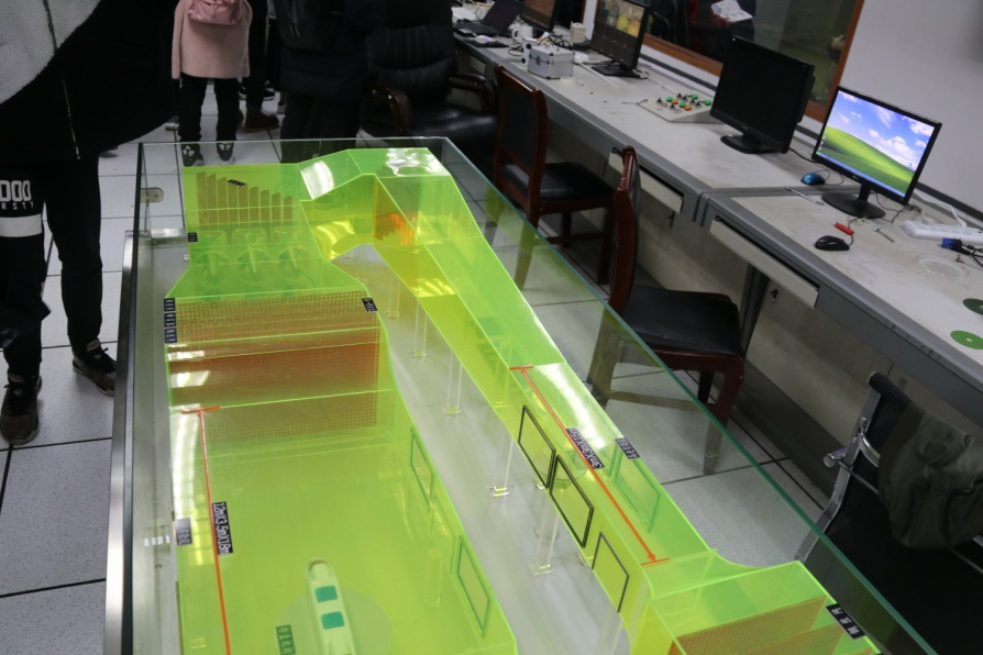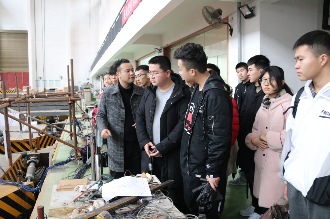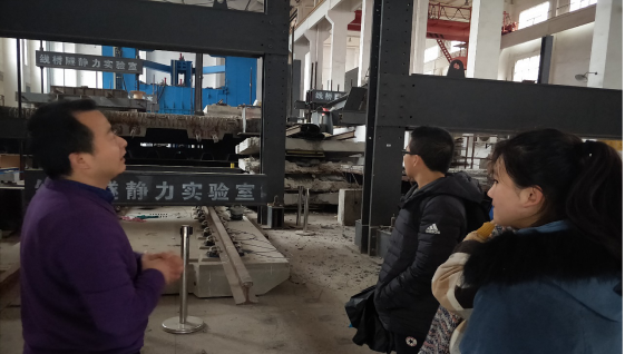 首先参观的是三号楼的振动台实验室。据了解,作为全国为数不多的大型振动台实验室之一,它能够进行不同地震的精准模拟,房屋、桥梁等建筑物的抗震试验,2018年11月份在这里举办了高铁国际赛这一重要赛事。目前铁道校区的振动台实验室仍在扩建中,预计在十年内达到四台联动的目标,为工程研究发展奠定了坚实基础。