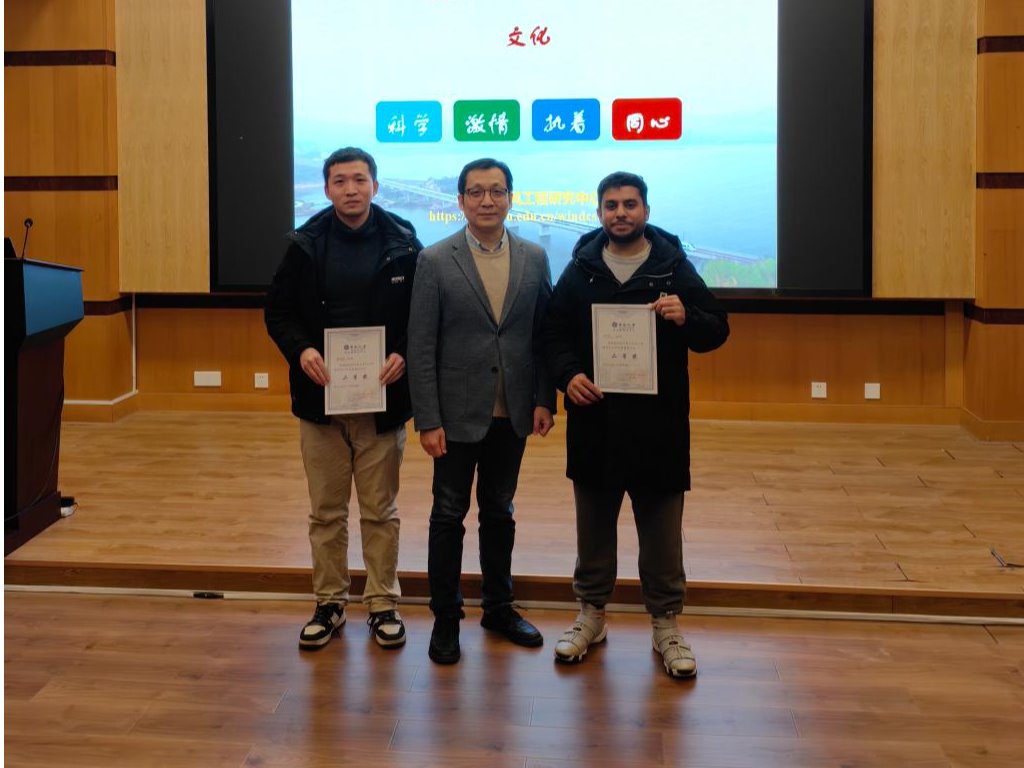 最后,经评委老师们的点评打分,本次学术进展研讨会共评选出6位优秀汇报同学,授予奖状和奖励;分别为一等奖舒卓乐同学,二等奖谢祖育、纳蒙同学,三等奖刘治威、刘航钊、熊一雄同学。